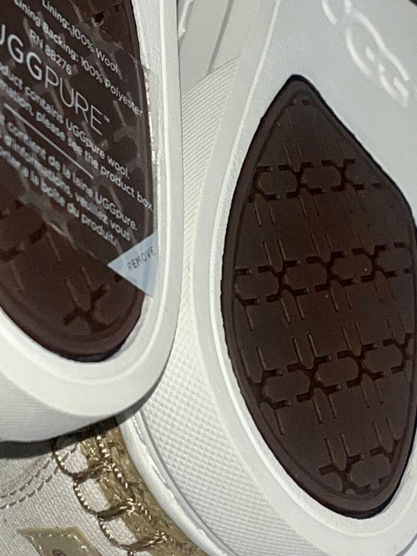 UGG Eyan ll canvas Sneakers with Espadrille inspired Jute Sitiching size 9 new--- for more great bargains check out our QR code On the front page, the north face, Micheal Kors, Nike Jordans, and more some under $25.